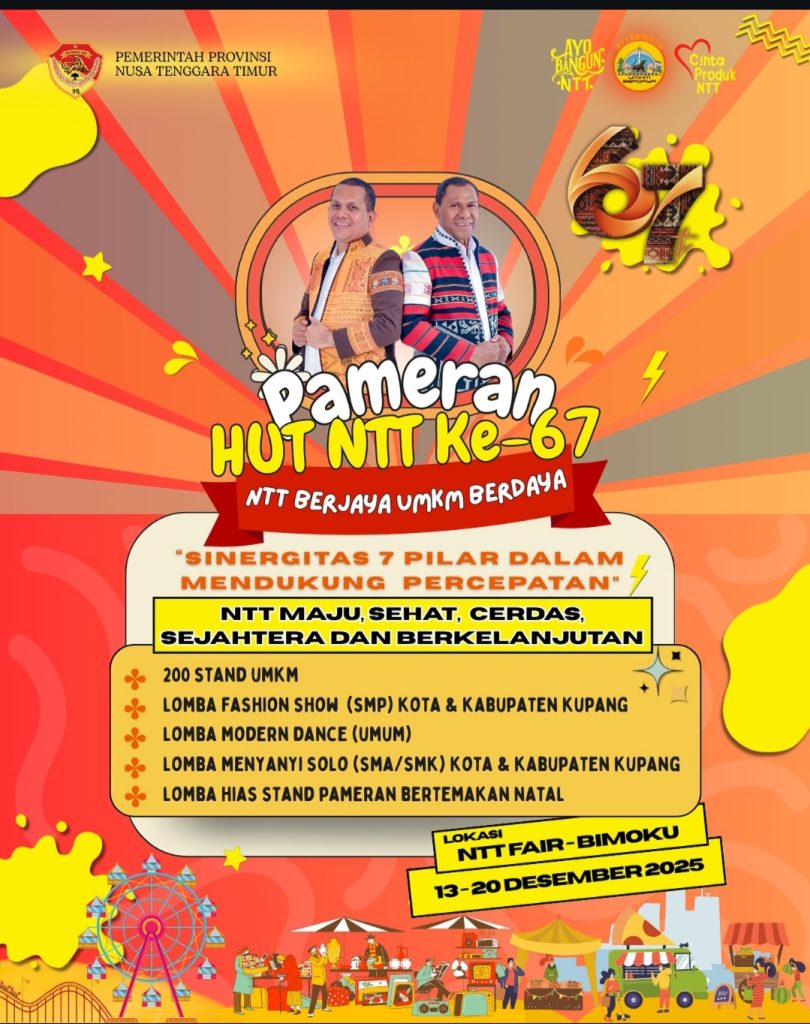 Pameran yang bertajuk “NTT Berjaya, UMKM Berdaya” ini akan berlangsung selama delapan hari, mulai 13 hingga 20 Desember 2025, sebagai bagian dari rangkaian peringatan HUT ke-67 Provinsi NTT.