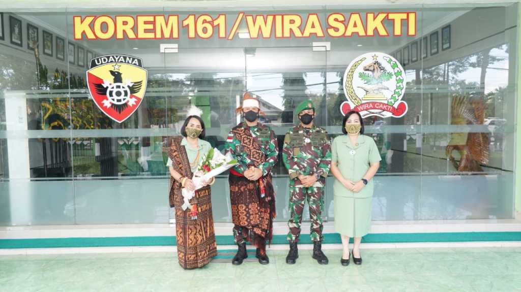 “Setiba di Makorem 161/Wira Sakti, dilaksanakan Tradisi Penyambutan Danrem 161/Wira Sakti berupa Pengalungan Kain Tais, Tarian Natoni, menerima Penghormatan Pos 1 dan Hormat Jajar.