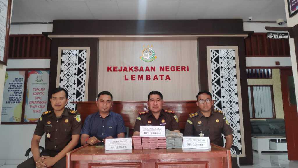 SULUH NUSA, LEMBATA – Kejaksaan Negeri Lembata melakukan eksekusi terhadap putusan Pengadilan Tipikor pada Pengadilan Tinggi Kupang terkait Uang Pengganti dan Uang Rampasan dalam perkara Tindak Pidana Korupsi pada pekerjaan Pembangunan Jeti dan Kolam Renang Apung beserta fasilitas lain di Pulau Siput Awalolong pada Dinas Kebudayaan dan Pariwisata Kabupaten Lembata Tahun Anggaran 2018 dan 2019,dari terdakwa Middo Arianto Boru, ST dan terdakwa Silvester Samun, SH sebesar Rp.261.996.000,00 (dua ratus enam puluh satu juta Sembilan ratus Sembilan puluh enam ribu rupiah) untuk di setorkan ke Kas Negara.