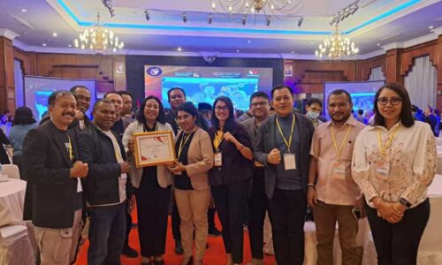 SULUH NUSA, BALIKPAPAN – Anggota Bawaslu RI Loly Suhenty menerima Buletin Bawaslu Lembata yang diserahkan oleh Koordinator Divisi Hukum, Pencegahan, Pengawasan Partisipasif Masyarakat dan Humas, Thomas Febry Bayo Ola didampingi staf kehumasan Indah Purnama Dewi pada Rapat Kerja Nasional Kehumasan Tahun 2022 di Balikpapan.