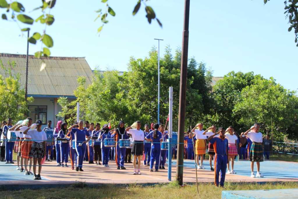 SULUH NUSA, LEMBAGA – Selasa, 26 Juli 2022 upacara seremonial pembukaan perlombaan kegiatan penyongsong Hari ulang Tahun SMAN 1 Ile Ape ke 8 di pelataran lapangan Singa Padang ditandai dengan parade drum band dan pertunjukan Tarian Lamaholot oleh anak anak bengkel seni SMAN 1 Ile Ape.