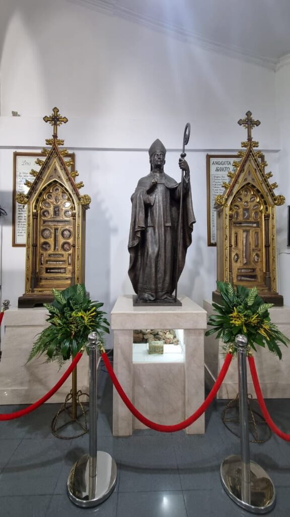 Patung St. Servatius (tengah) dan 2 peti Relikuarium (kiri dan kanan)
