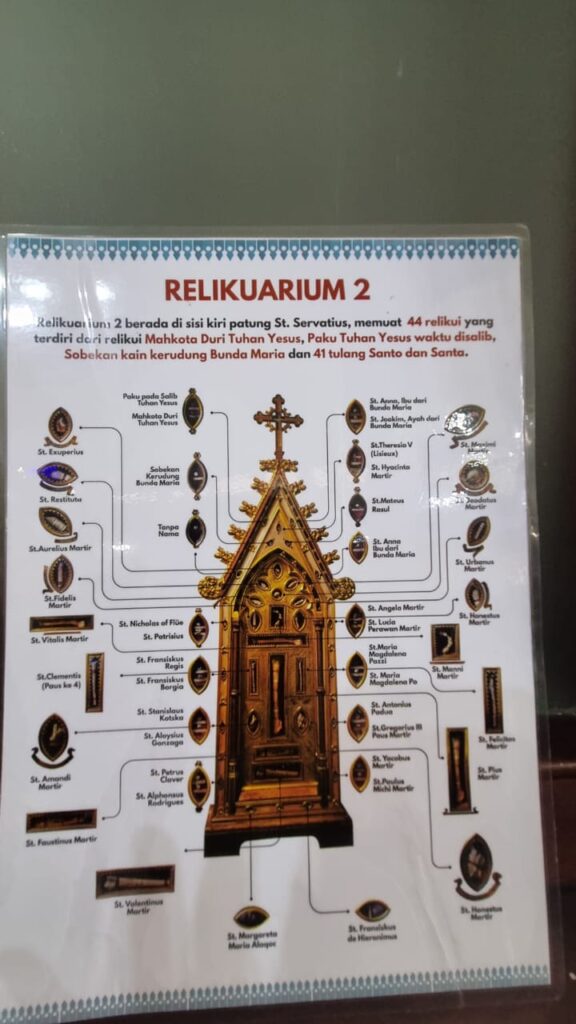Gereja ini kini menjadi tempat penahtaan tanda-tanda kebesaran Allah yang ada pada atau melalui para KudusNya – sebuah sarana rohani yang harus dihormati – dan untuk selalu mengingatkan umat akan besarnya Kuasa dan Kasih Allah. Bahkan beberapa orang memberikan kesaksian baik lisan juga melalui pesan WhatsApp bahwa penyakit yang dideritanya atau oleh keluarganya, seperti telinga, tulang dan lainnya sembuh setelah mereka berdoa di Gereja St. Servatius, khususnya setelah melakukan devosi kepada St. Servatius di depan Relikui St. Servatius yang ada di dalam gereja, tambah Bambang.