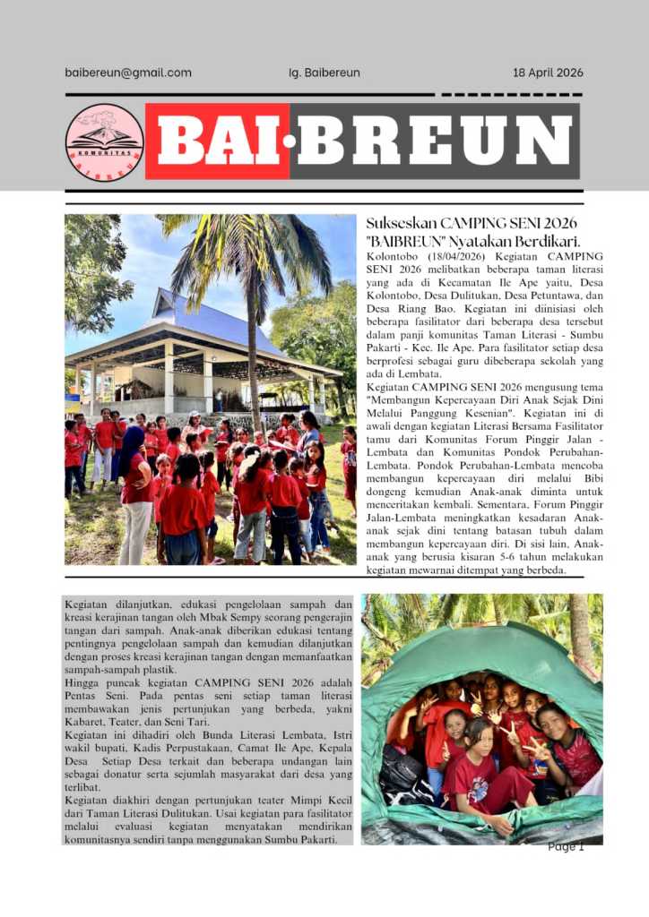 “Kegiatan diakhiri dengan pertunjukan teater Mimpi Kecil dari Taman Literasi Dulitukan”, tutur Maria Ate sembari menginspirasi pembentukan komunitas Baibereun yang beranggotakan fasilitator literasi di Kabupaten Lembata.