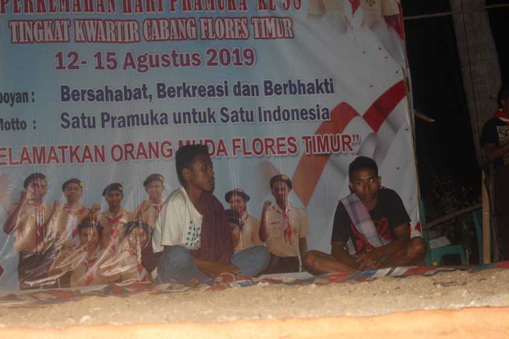 Demikian latar dan sepenggal sinopsis dalam pentas teater “ Air Mata Air” ketika Bumi Perkemahan Nusa Dani Solor Barat menjadi saksi. Ketika setiap Gugus Depan (Gudep) semua sekolah yang hadir untuk mengikuti Kemah Kwarcab Flotim, 11-15 Agustus 2019, menampilkan kebolehan dalam mengisi acara Pentas Seni dan Budaya. Di sana ada Tarian Daerah, Dolo – Berbalas Pantun, Lagu daerah dan musik khas daerah, Teater Budaya Lamaholot dan acara hiburan lainya. Disaksikan seluruh Pembina dan peserta pramuka Kemah Kwartir Cabang Flores Timur 2019